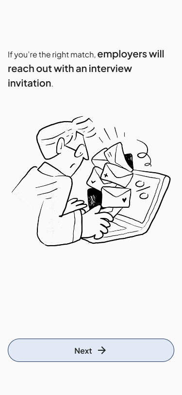I designed this page to let users improve their job matches by sharing why they declined an interview invitation. This feedback helps the system adjust to their needs. I later added a skip option for users who didn’t have time to provide input but still wanted to move forward quickly.